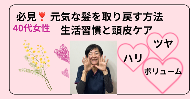 スーパースカルプ発毛センター 川西池田店 発毛技能士の佐々木彩子です! 40代の髪にハリ・ツヤを取り戻す生活習慣~今回は40代女性の頭皮と髪の変化と元気な髪を育…